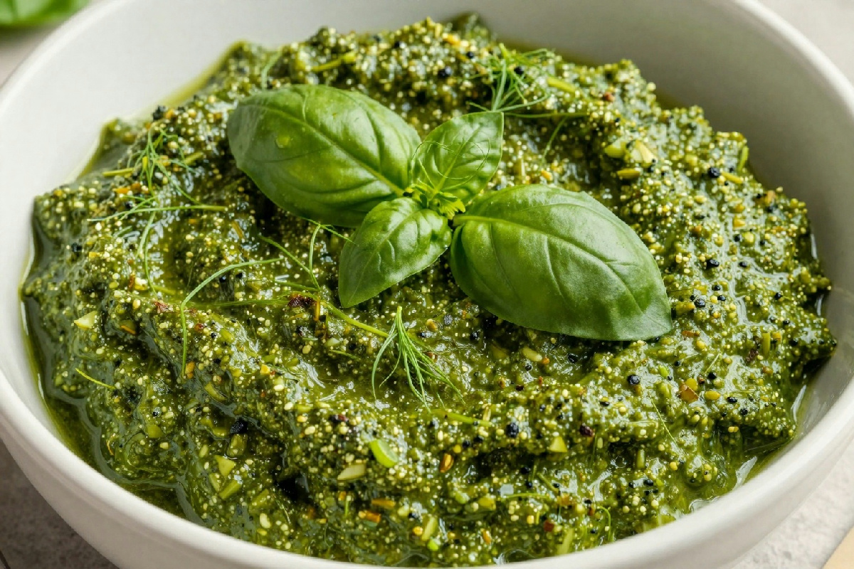Il pesto tradizionale, originario della Liguria, è preparato con basilico, pinoli, aglio, parmigiano e olio d’oliva. Tuttavia, la versione siciliana propone una variazione che colpisce per freschezza e originalità . Sostituire il basilico con il finocchietto non solo offre un sapore diverso, ma crea anche un abbinamento perfetto con la cucina tipica dell’isola. Il pesto di finocchietto si sposa bene con la pasta, ma può essere utilizzato anche per condire carni, pesci e verdure grigliate.